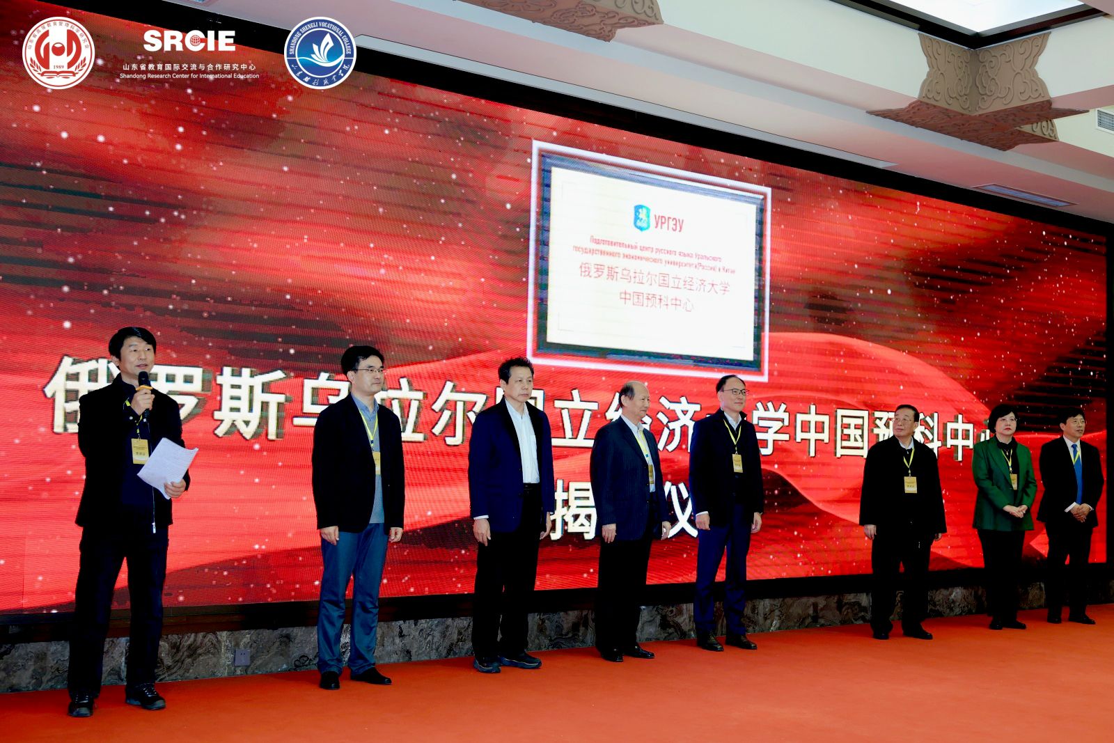 1月11日上午,研修会在庄重的开幕会中拉开帷幕。山东省高等教育管理科学研究会秘书长宋新刚主持开幕会。山东财经大学党委委员、副校长彭红枫教授,山东省高等教育管理科学研究会会长宋承祥,中国教育国际交流协会中外合作办学分会理事长方军等领导嘉宾出席并致辞。开幕会上,俄罗斯乌拉尔国立经济大学中国俄语预科中心及山东省高等教育管理科学研究会高校国际交流与合作工作委员会研修基地正式揭牌,标志着山东在国际教育合作领域再添重要平台。