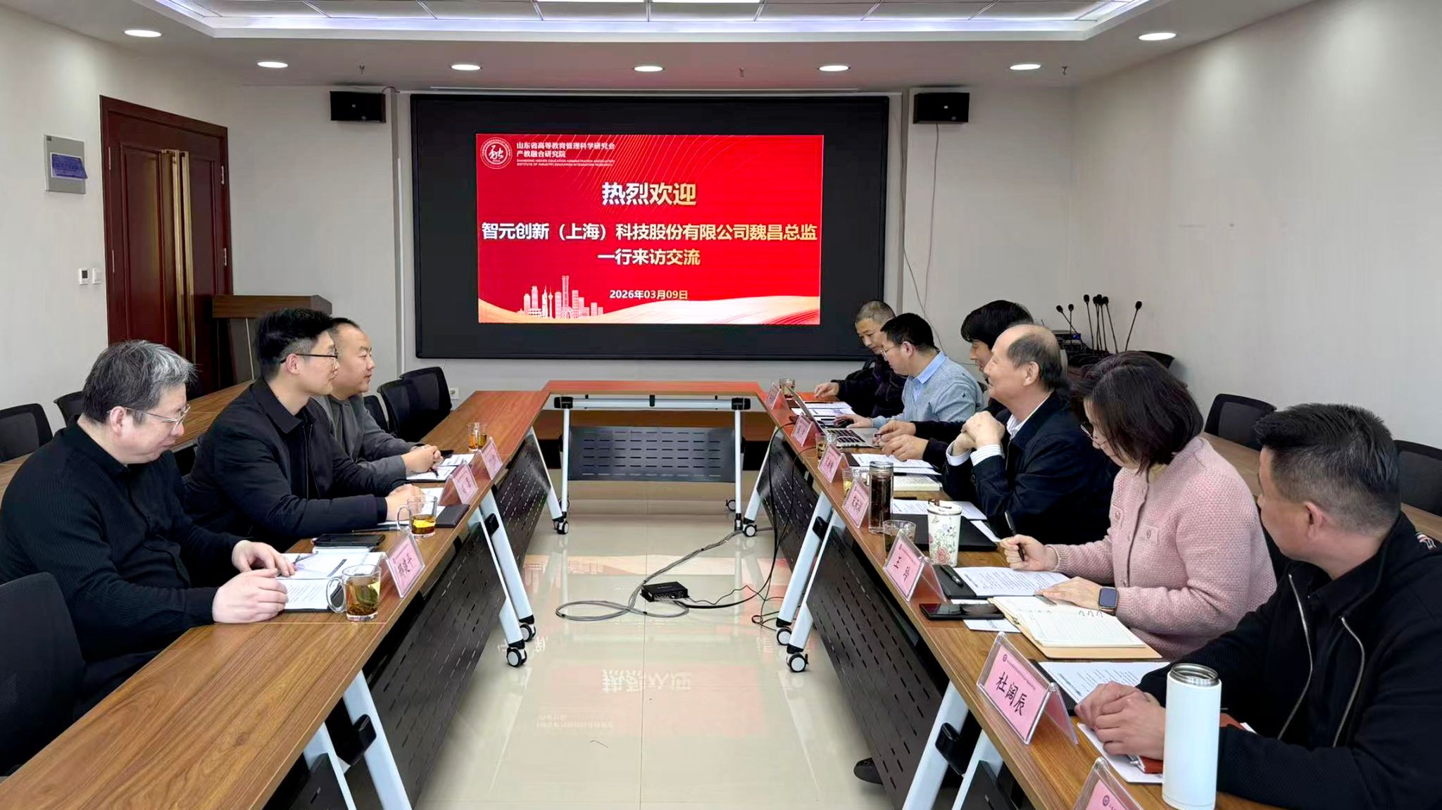 3月9日下午,智元创新(上海)科技股份有限公司科研教育系统部总监魏昌一行,来山东省高等教育管理科学研究会产教融合研究院开展考察交流。双方围绕“具身智能产业人才创新培养与产教融合高质量发展”核心议题举行座谈研讨,重点聚焦合作落地路径,达成多项重要战略合作共识,明确将全方位协同发力,推动具身智能人才培育与产业需求深度衔接,助力山东抢占未来产业发展制高点。智元机器人VAP伙伴、秦洋智能科技总经理郝阳,智元机器人VAP伙伴、山东大学创新创业学院执行院长邢建平,山东省高等教育管理科学研究会会长兼产教融合研究院院长宋承祥,研究会秘书长兼研究院常务副院长宋新刚,研究院副院长兼秘书长王玲,副院长杜阔辰,办公室主任张宇,院长助理宋浩杰等领导嘉宾出席会议,会议由宋新刚主持。